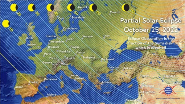 За повідомленням Дніпровського планетарію почнеться затемнення о 12:22 за київським часом, максимальна фаза — о 13:36, а завершиться — о 14:49.