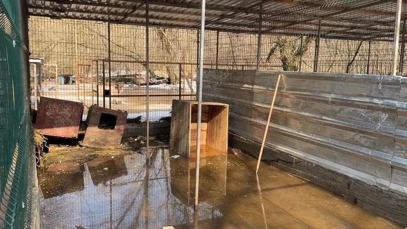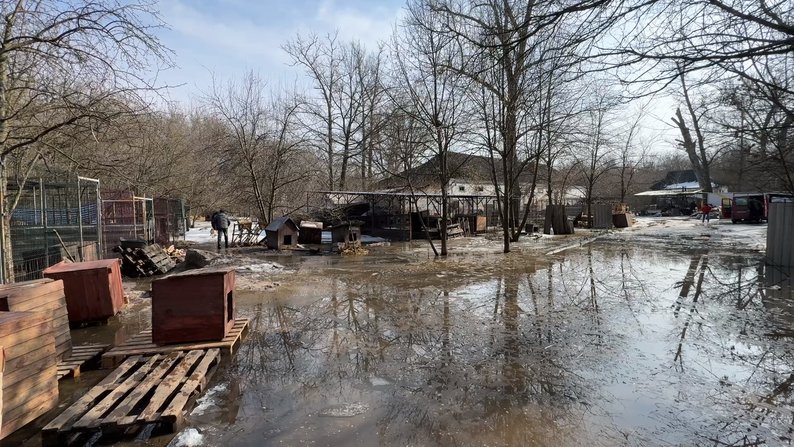 На 14:00 2 березня рівень води на території притулку сягав у різних місцях від 20 до 40 сантиметрів. Вода стоїть й у вольєрах, які напередодні були сухими, сказала працівниця притулку Лілія Аксьонова.