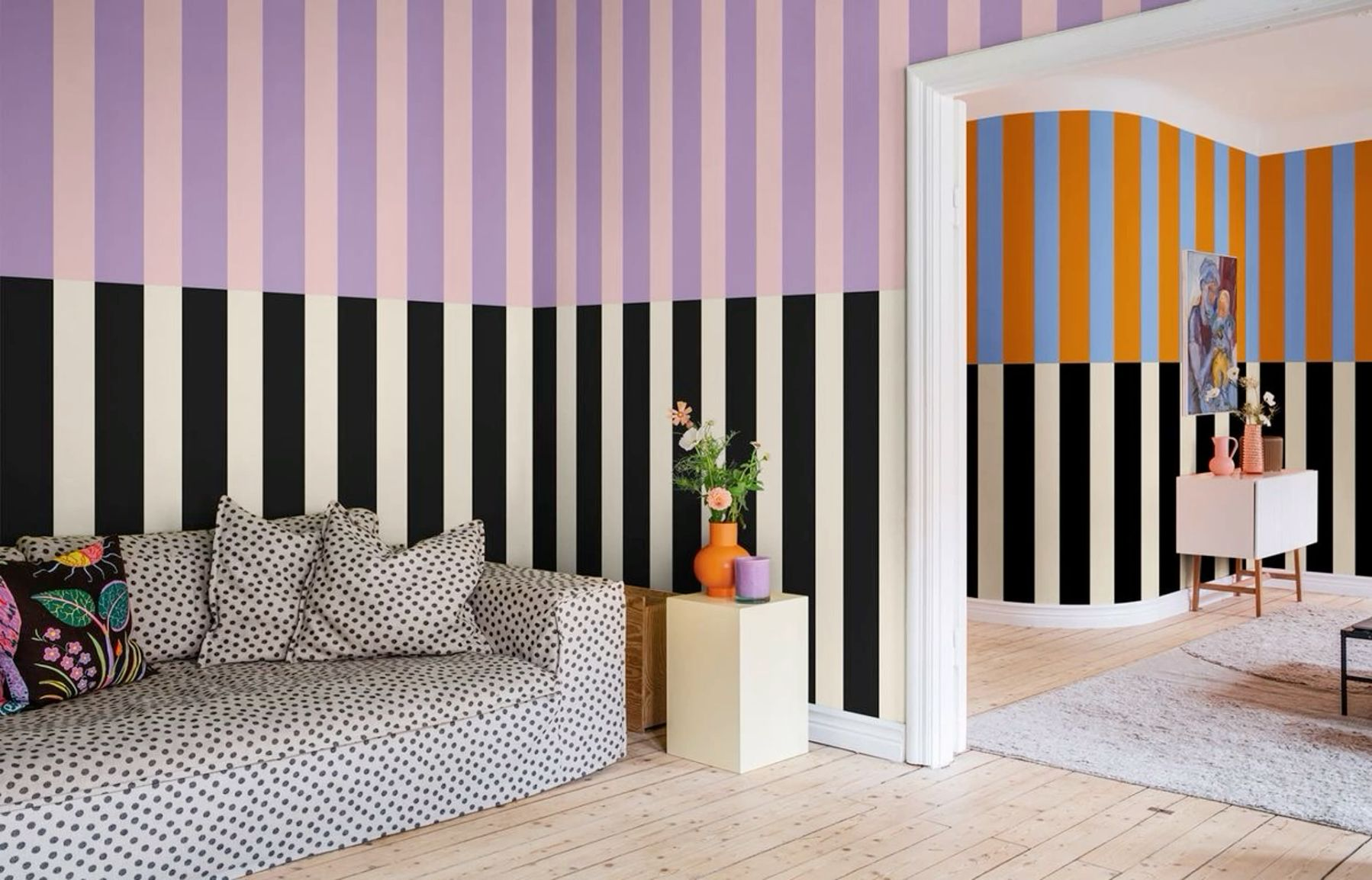 - акцентна стіна — одна площина виділяється кольором або виразним малюнком для фокусування уваги й орієнтації;