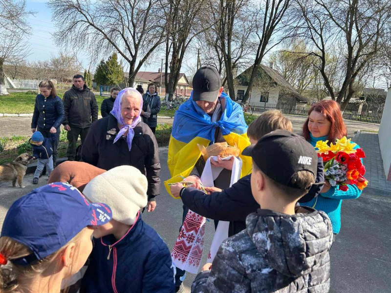 Як йдеться у дописі, житель села Малий Мидськ Костопільської громади Олександр Крупеня повернувся додому після звільнення з полону. Односельці привітали військовослужбовця у сільській школі, в якій навчаються троє його дітей.